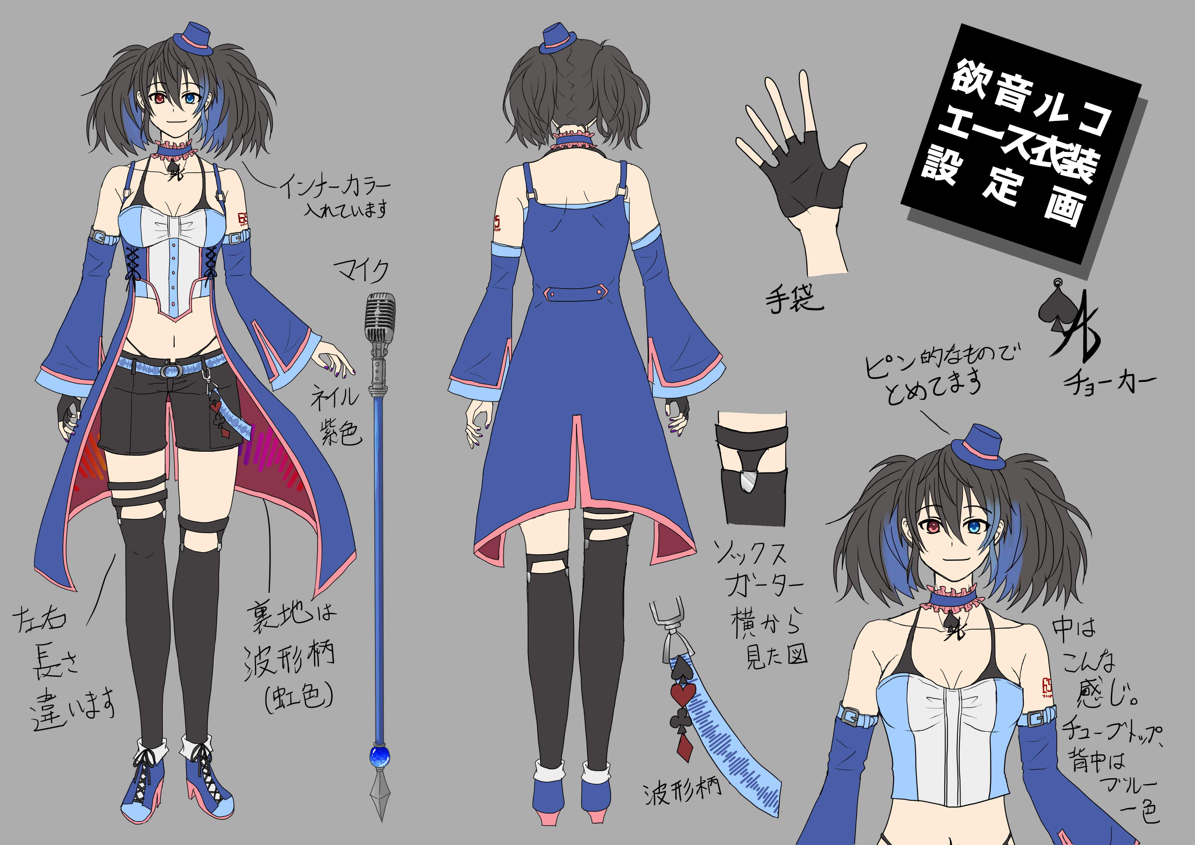 - 欲音ルコ エース衣装イラスト+設定画のダウンロードはこちら(Zip形式で圧縮済):